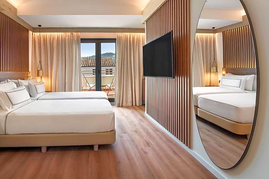 The spacious double room provides air conditioning, a mini-bar, a tea and coffee maker as well as a terrace with city views.